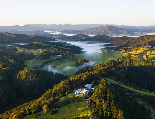 Sitting above a sheltered inlet and with magnificent views of its namesake bay and the wider Bay of Islands, Paroa Bay Winery is thoughtful, gracious and really, really special. With two stunning villas positioned in this substantial vineyard, it is a luxury experience steeped in good old Kiwi hospitality with each villa providing a distinctly different escape, both under the watchful umbrella of The Lindis Group. Tarāpunga villa is nothing short of spectacular – its uniquely designed roof pays homage to the local seabirds – with views looking out over an expansive entertaining area and heated infinity pool. It also has an add-on mini-villa plus hot tub and sauna. While Tarāpunga might have you dreaming up a soirée with a guest list that includes Madonna, Lizzie and the Clooneys, The Vineyard Cottage, although still in the ultimate lap of luxury, provides a farm-cottage feel surrounded by native bush and glorious vines complete with pool, hot tub and sauna, and is perhaps more in line with having celebrity farm-dwellers Oprah, Brad Pitt or maybe Nadia and Carlos Bagrie sipping something splendid with you on the deck. Speaking of which, Paroa Bay Winery wines – sauvignon blanc, rosé, chardonnay, syrah and a CMC blend – are all grown, handpicked, made and bottled onsite and the award-winning restaurant, Sage, is extra-special.