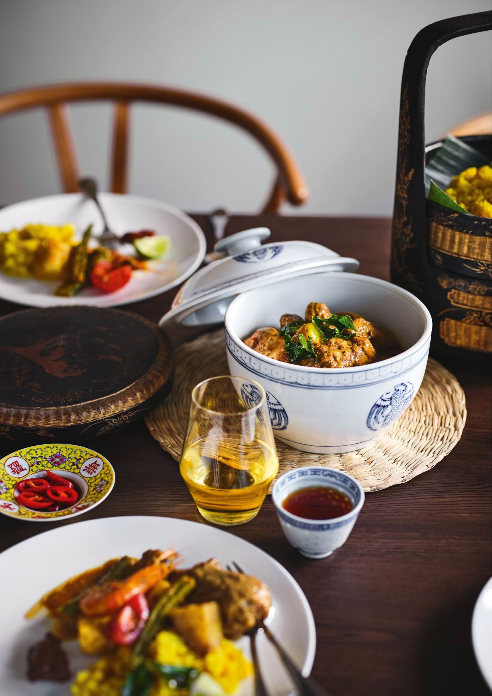 As a fifth-generation Peranakan, Connie was mirroring the migratory origins of this rich culture, created in the early 1800s when mainland Chinese men travelled to Malacca, Penang and Singapore to trade. Marrying Malay women, they established wealthy households staffed with maids, cooks and nannies (amahs), in which the wives – the Nonya – spent their days in leisure planning meals for their men – the Baba. Connie explains, “The resulting food is quite extraordinary. It’s a blend of Chinese and Malay food, and a bit of Indian cuisine, so you can see the cultures blending. And because they had all this time, all this help and all this money, the food became very luxurious and exceedingly complicated.”
