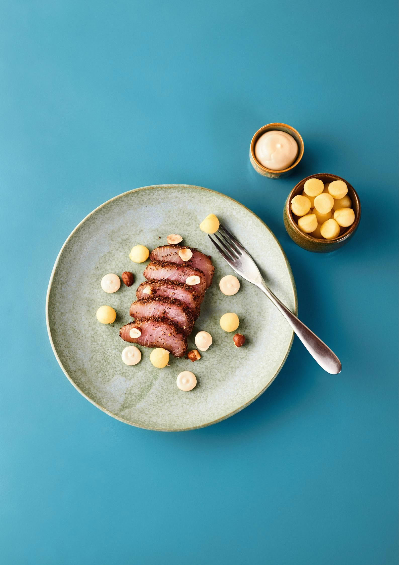 For this issue, I’m looking backwards as much as forwards. My recipe plays with memory, the years of slicing it raw, of experimenting with smoke and salt in my small kitchen at the edge of the sea. This dish, a coffee-cured pastrami of kingfish, is a nod to tradition filtered through a distinctly New Zealand lens. Kingfish takes wonderfully to curing; its firm flesh holds shape and structure, its natural sweetness is amplified by time and technique. It’s not quite deli, not quite sashimi, more a conversation between the two. A meeting of smoke, spice, salt and summer.
