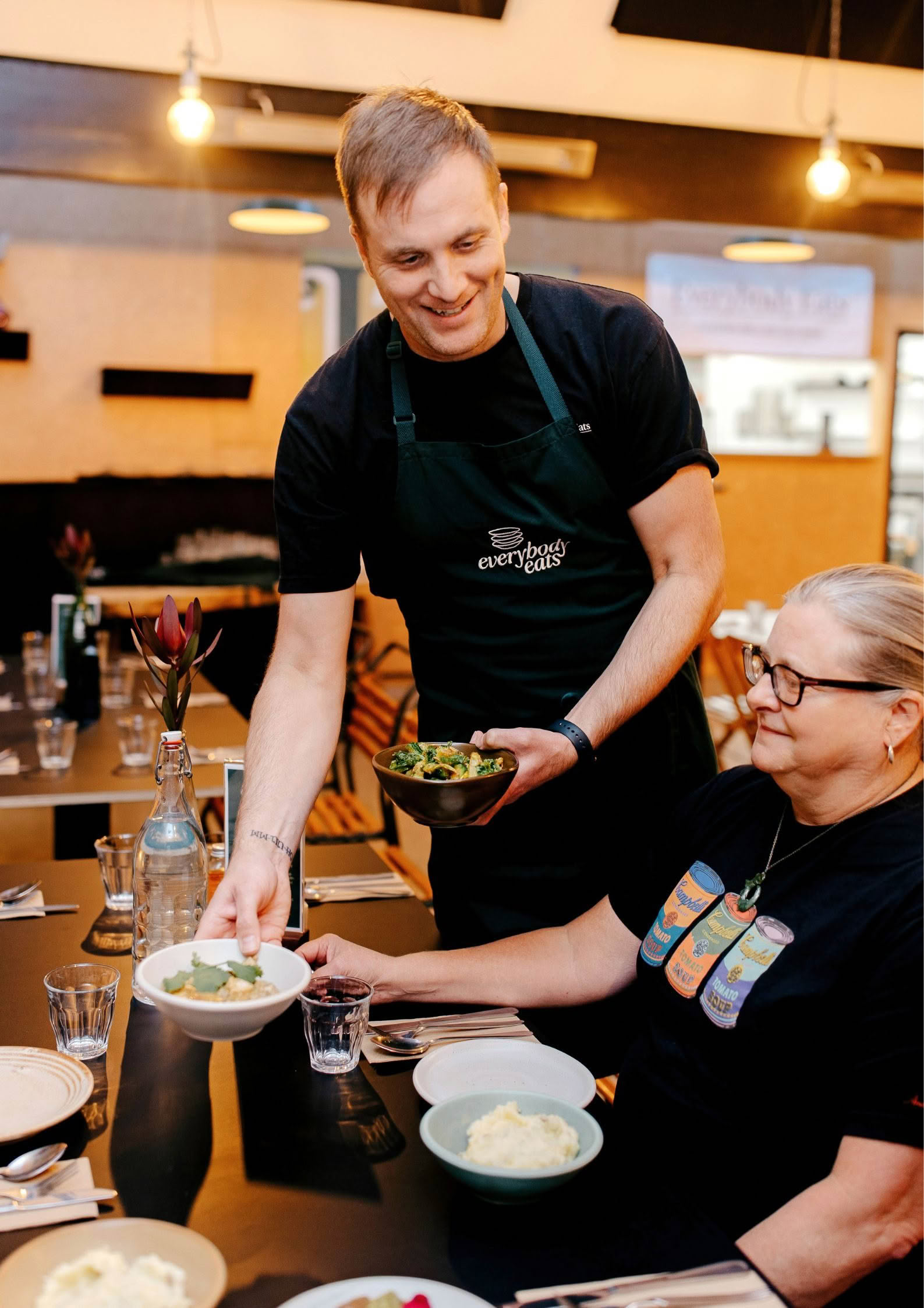 Food insecurity and wastage are not environmental phenomena – they are neither a hurricane, nor an earthquake – they are predictable, measurable and solvable. And one group of people doing what they can to fix this is the charity Everybody Eats. Started in Auckland in 2017, Everybody Eats rescues food that would otherwise be destined for the scrapheap and turns it into restaurant-quality meals. It relies almost entirely on volunteers to run three sites in Auckland and Wellington and feeds hundreds daily, each guest paying what they can afford that day. Those that can pay a little bit more do so, ensuring everyone can have a seat at the table.