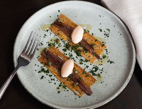 Ortiz Cantabrian anchovy on a crouton with tomato sorbet at Movida