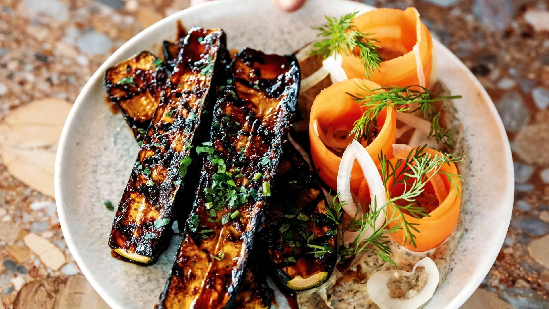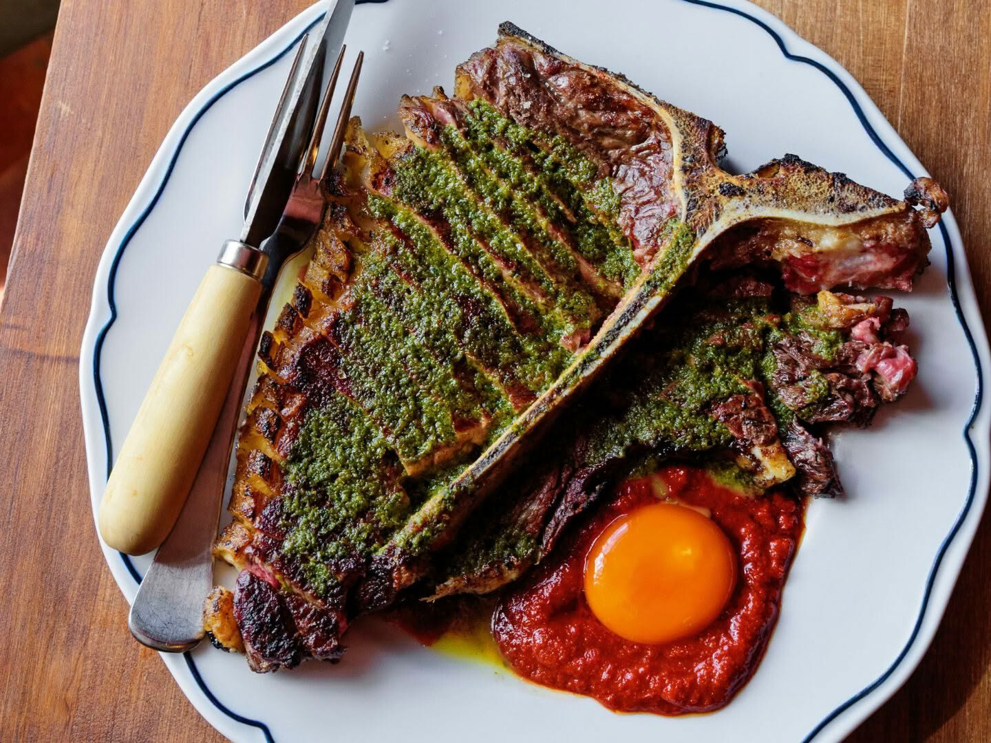 Like Kisa, Parla’s menu is broadly Middle Eastern in theme, yet despite challenging diners to make sense of their bewildering array of Turkish and Arabic menu terminology, nowhere do these sister restaurants claim to be authentic. Indeed, the excitement of both menus lies precisely in this creative rearrangement of the Middle Eastern store cupboard by Mosaic Group executive chef Jonny Taggart: braised beef cheek with dates, tahini and a touch of chilli, for example; or pomegranate molasses slathered over whole courgettes which are steamed with orange and then left to suck in the sweet-sour flavour as they cool, before being grilled to order. Another crowd-pleaser is the Circassian Chicken, here converted from mezze into salad with shredded Chinese wombok and pita crisps. Master strokes are slugs both of smoked, spicy hoot oil and of so-called masabacha, the chunky version of hummus (so-called because here walnuts replace chickpeas, the basic ingredient!), its richness balanced with a grilled half-lemon.