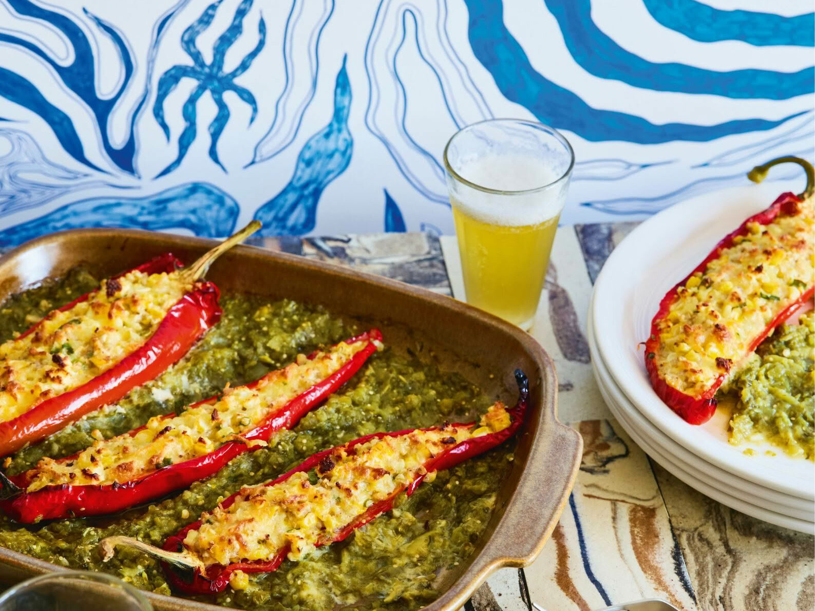 Buckwheat & Cheese-stuffed King Sweetie Peppers With Tomatillo Salsa Verde