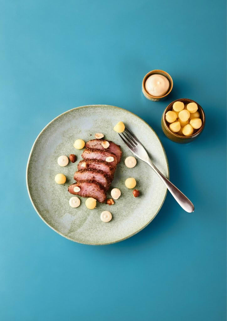 Coffee-Cured Kingfish Pastrami, Pickled Potato & Lemon Mayonnaise