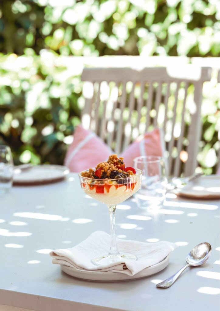 Lemon Posset With Passionfruit Cream, Berries & Almond Crumb