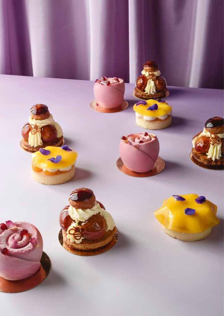 A refined take on the iconic French dessert, these mini Saint Honoré cakes combine crisp puff pastry, delicate choux puffs glazed in caramel, silky crème pâtissière and Chantilly cream. They are a showstopping centrepiece for any afternoon tea, celebration or plated dessert service. If you want to make your own puff pastry, you can use the recipe for the mille- feuille, adding extra time for the pastry to chill.