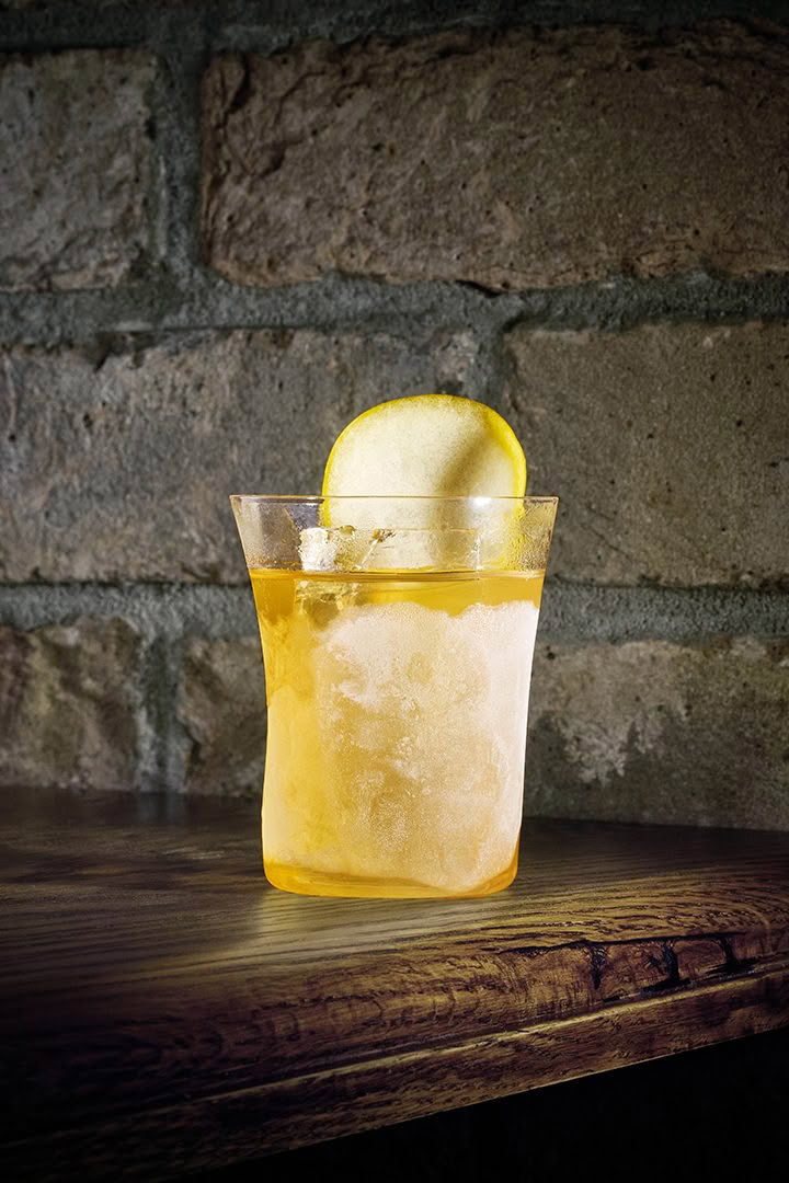 A layered cocktail combining Elsewhen Applejack, whisky-infused Mānuka Honey, cold-distilled wild celery and preserved apple to evoke the depth and wildness of the Blue Gum swimming hole that the drink is named after. Pour it over large-format ice in a frozen rocks glass and garnish with a slice of honey-preserved apple.