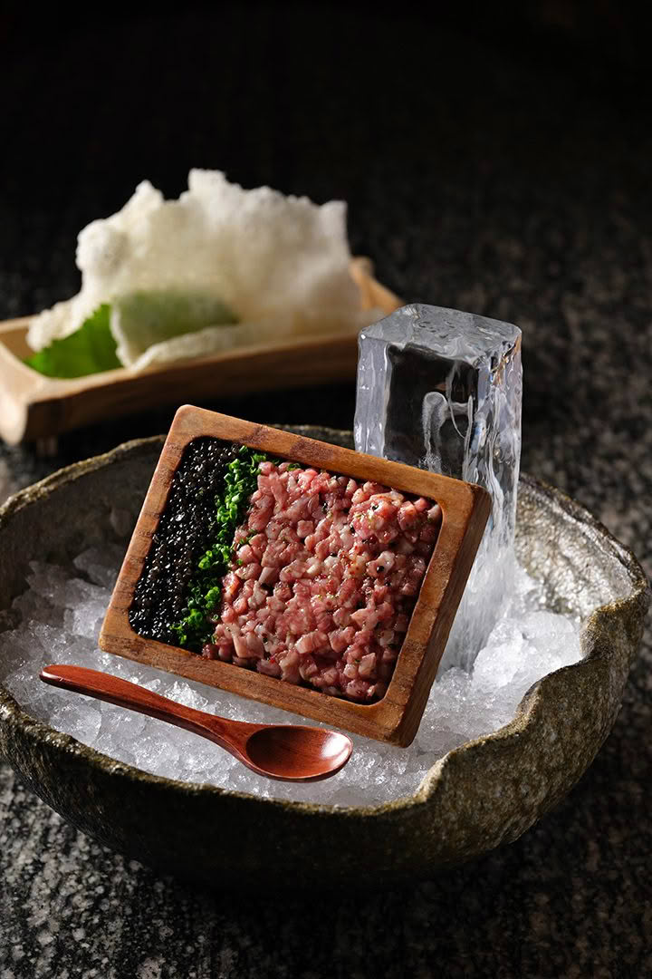 We combined the whisky-infused Mānuka Honey into the tartare and paired it with vintage caviar and sushi meshi crackers.