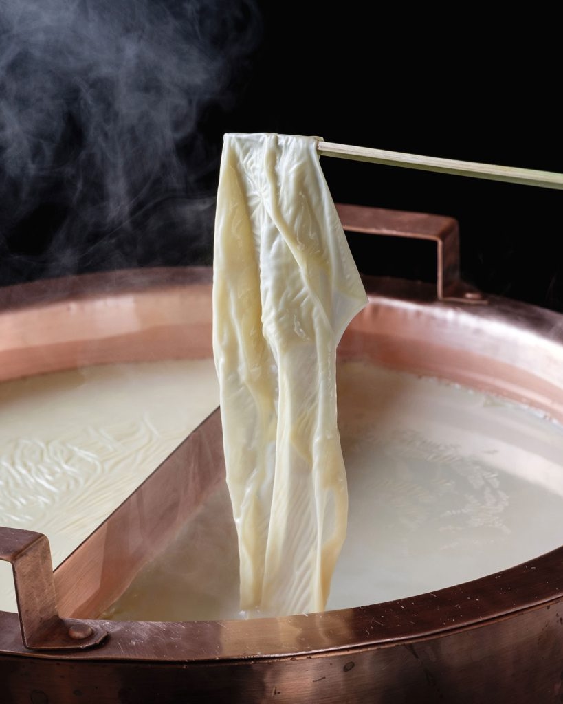 Beyond its calling, shojin ryori (Buddhist vegan cuisine) long demonstrated necessity as the mother of invention. Monks charged with cooking the monastery’s vegan diet had no choice but to embrace innovation due to limited available ingredients. You’ll know edamame as the green soybean pods people pop like peanuts, but dried soybeans (daizu) enjoy far more culinary applications in shojin cuisine. Nutty and delicious when cooked, daizu are also incredibly nutritious when fermented into miso paste or natto (although the latter condiment’s pungent aroma and viscous texture is challenging for some). Rehydrated daizu are ground to produce soy milk which is then set into tofu of various consistencies. Additional treatment, such as dehydrating (a happy accident from ancient times) or deep-frying (a game changer introduced with Buddhist teachings from China), further enhanced the flavour of tofu and its textural range which, if you squint your palate, are vaguely reminiscent of animal proteins such as meat or cheese. Creamy yuba (tofu skin, akin to that which forms when dairy milk boils) is the perfect vessel for wrapping foods. Okara (soy milk lees), with its grainy couscous-like consistency, forms the base of countless side dishes and fillings. Eventually capturing the attention of the aristocracy, the cuisine became more accessible and popular.